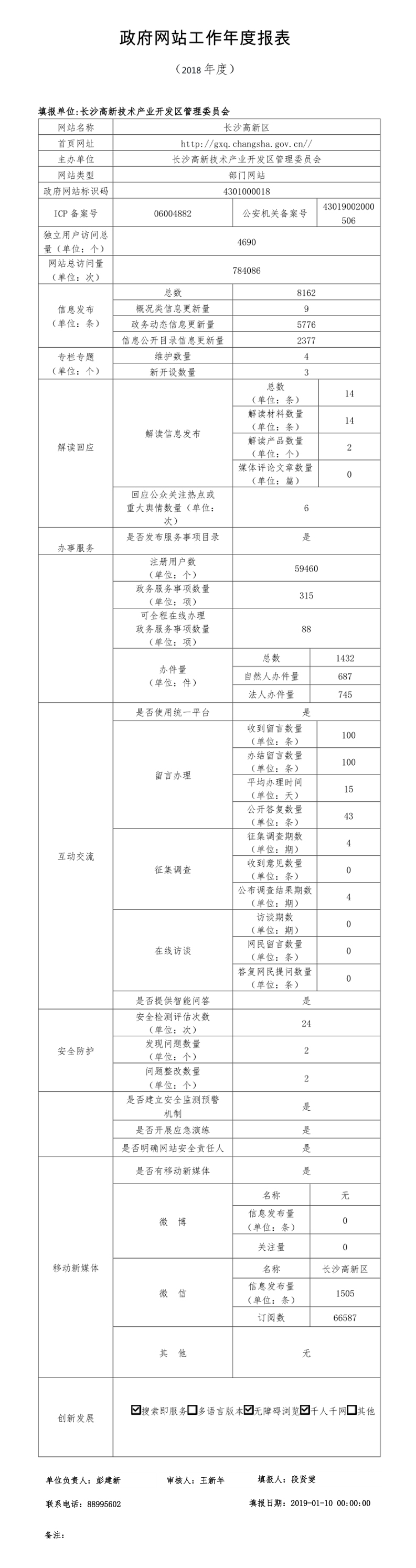 长沙高新区利来老牌国际网站工作年度报表(2018年)