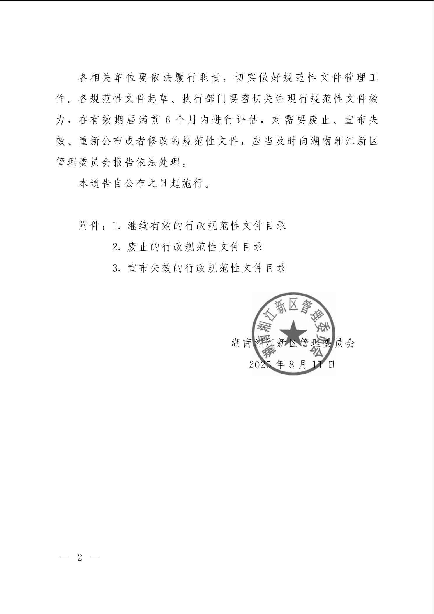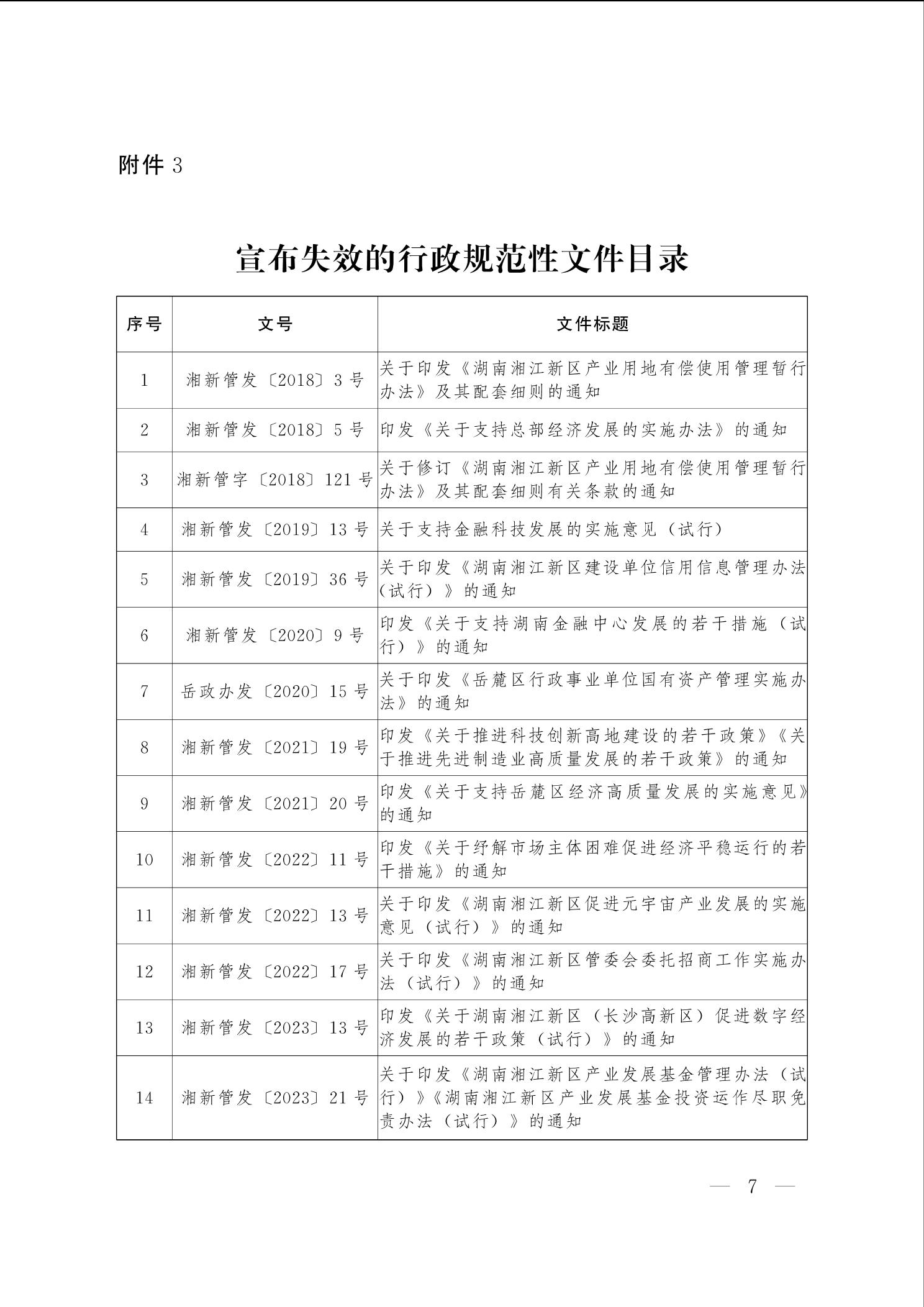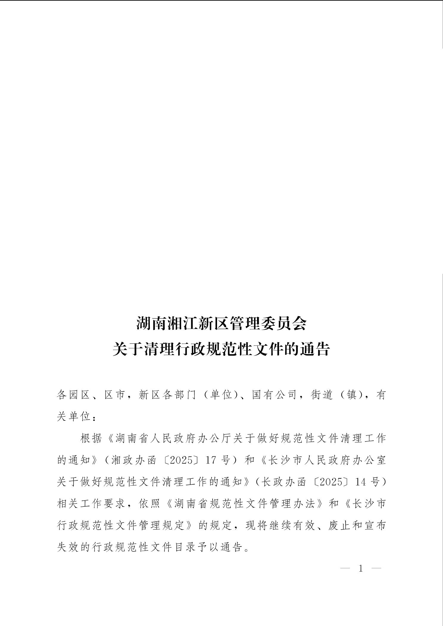 湖南湘江新区管理委员会关于清理行政规范性文件的通告