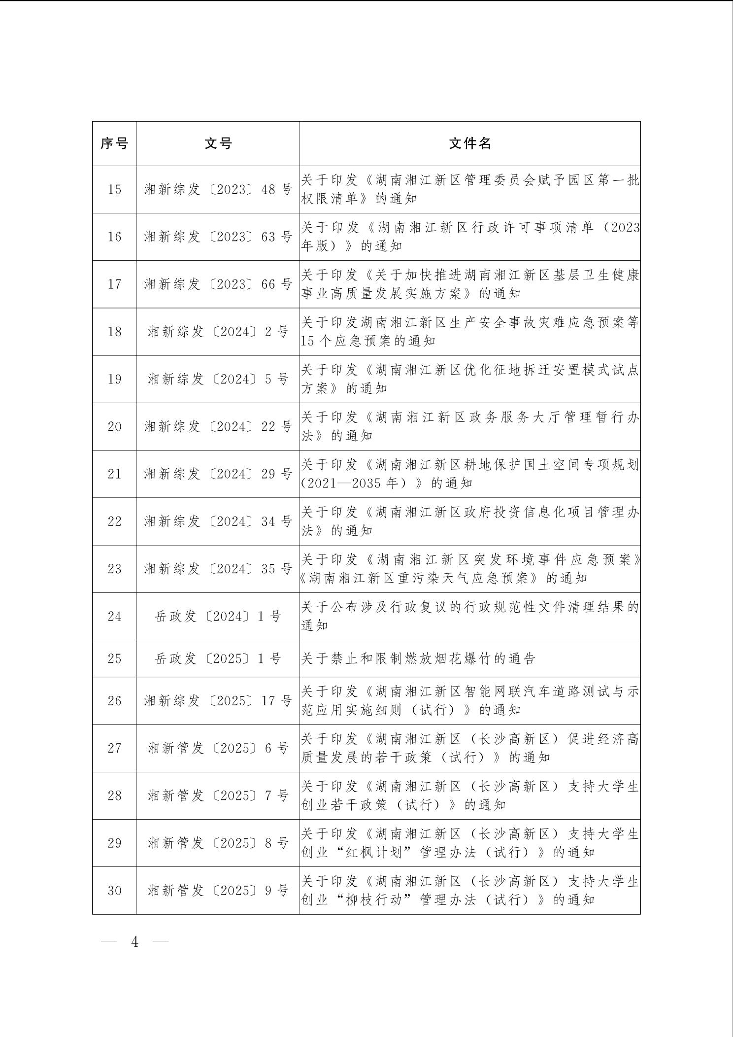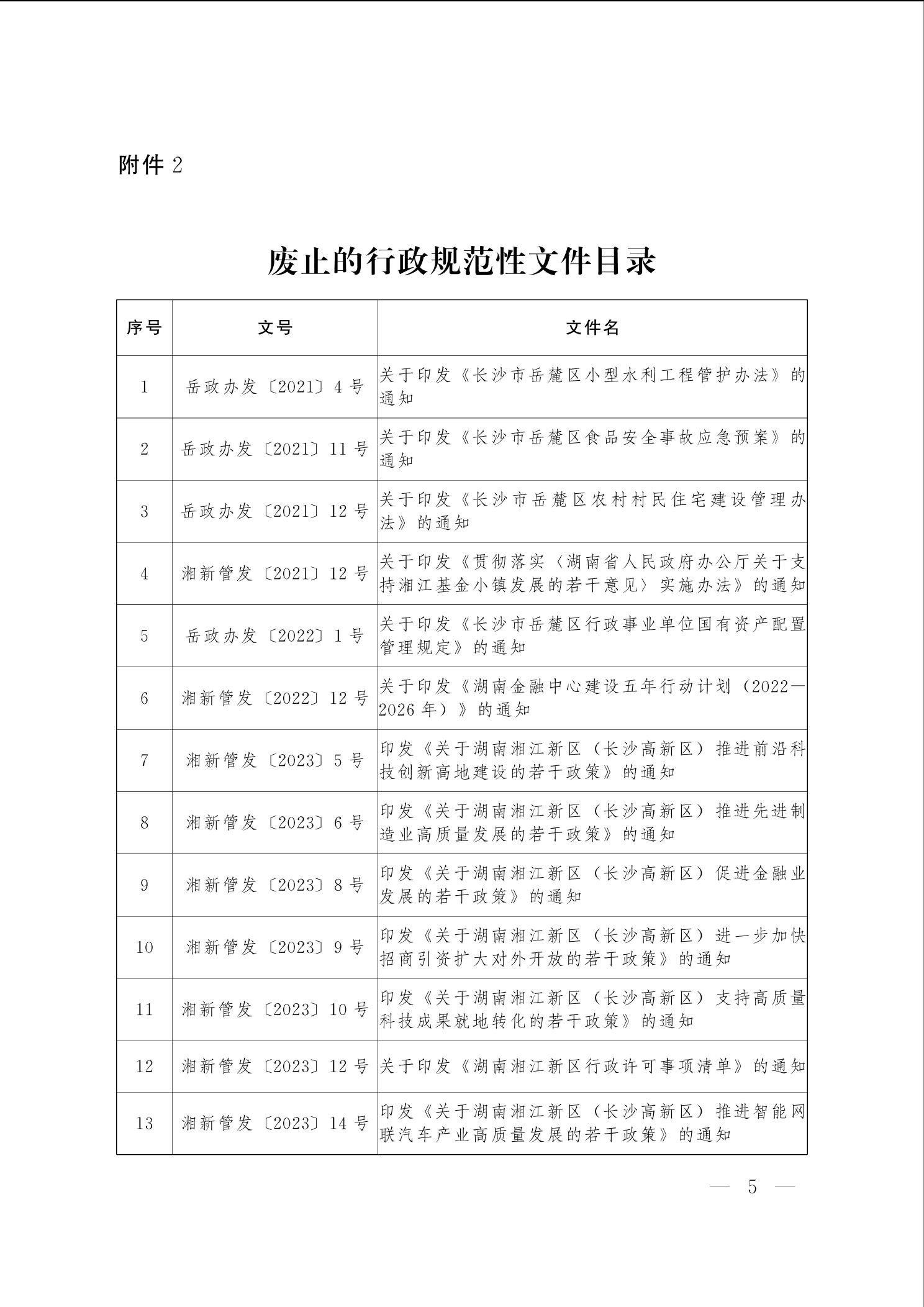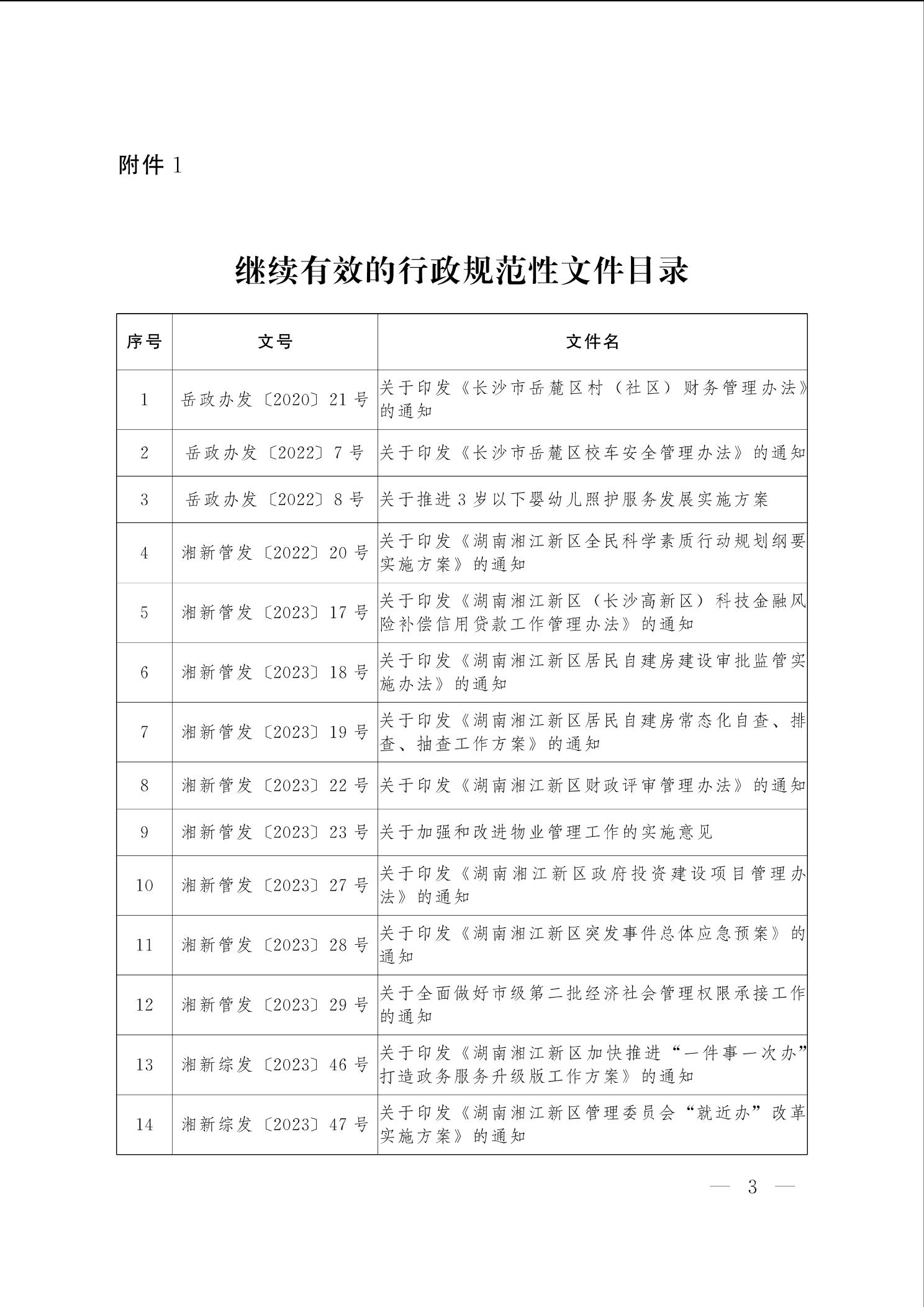 湖南湘江新区管理委员会关于清理行政规范性文件的通告
