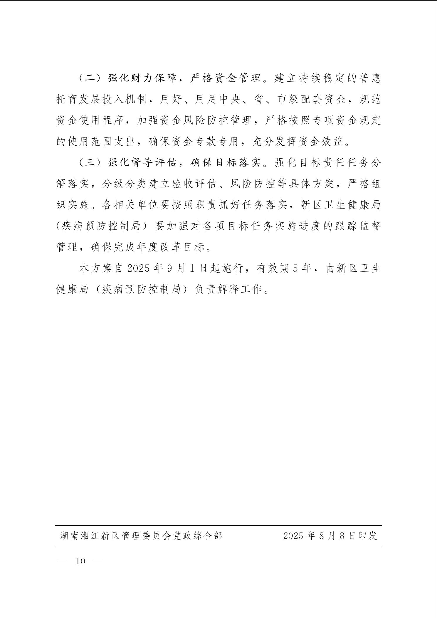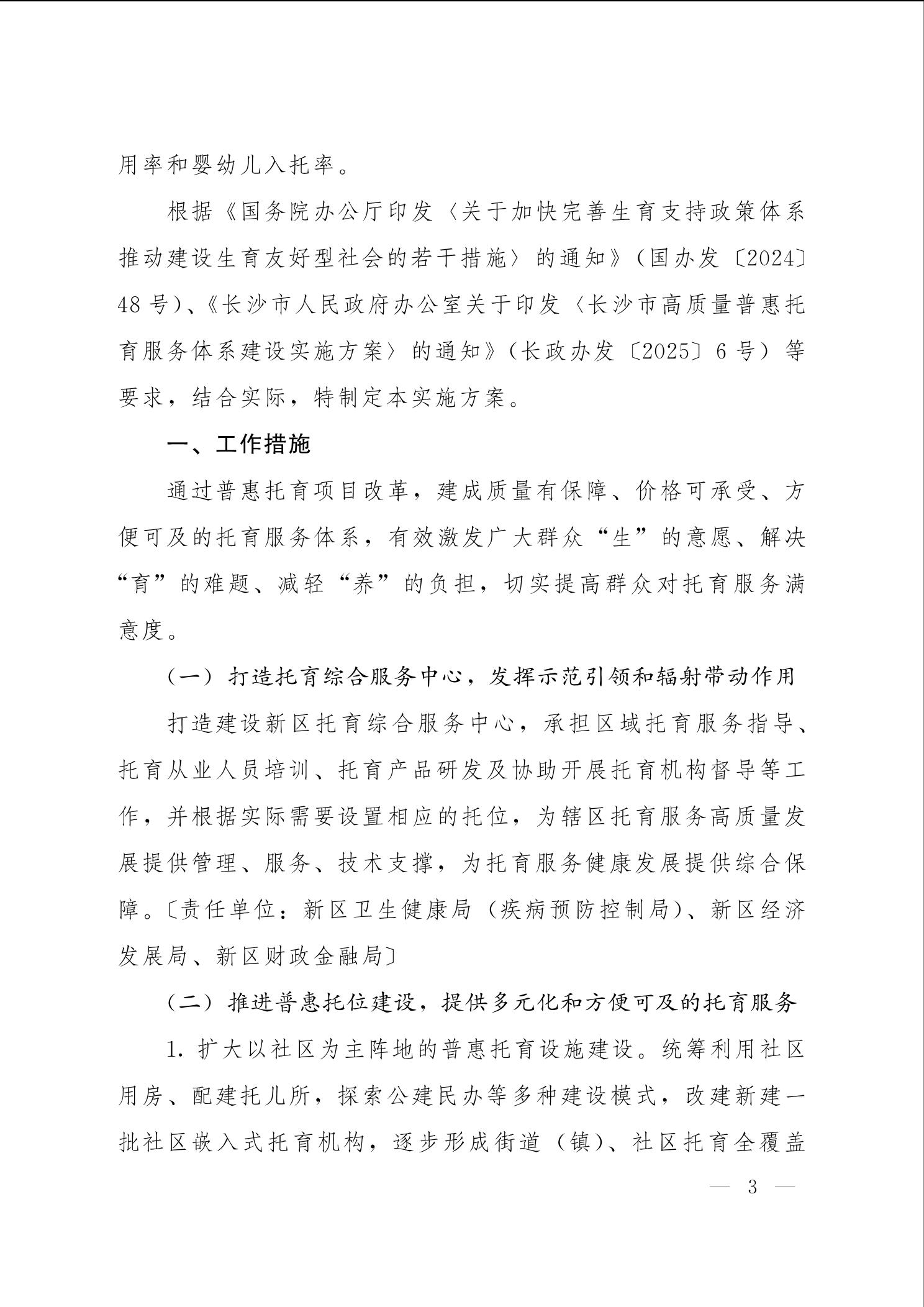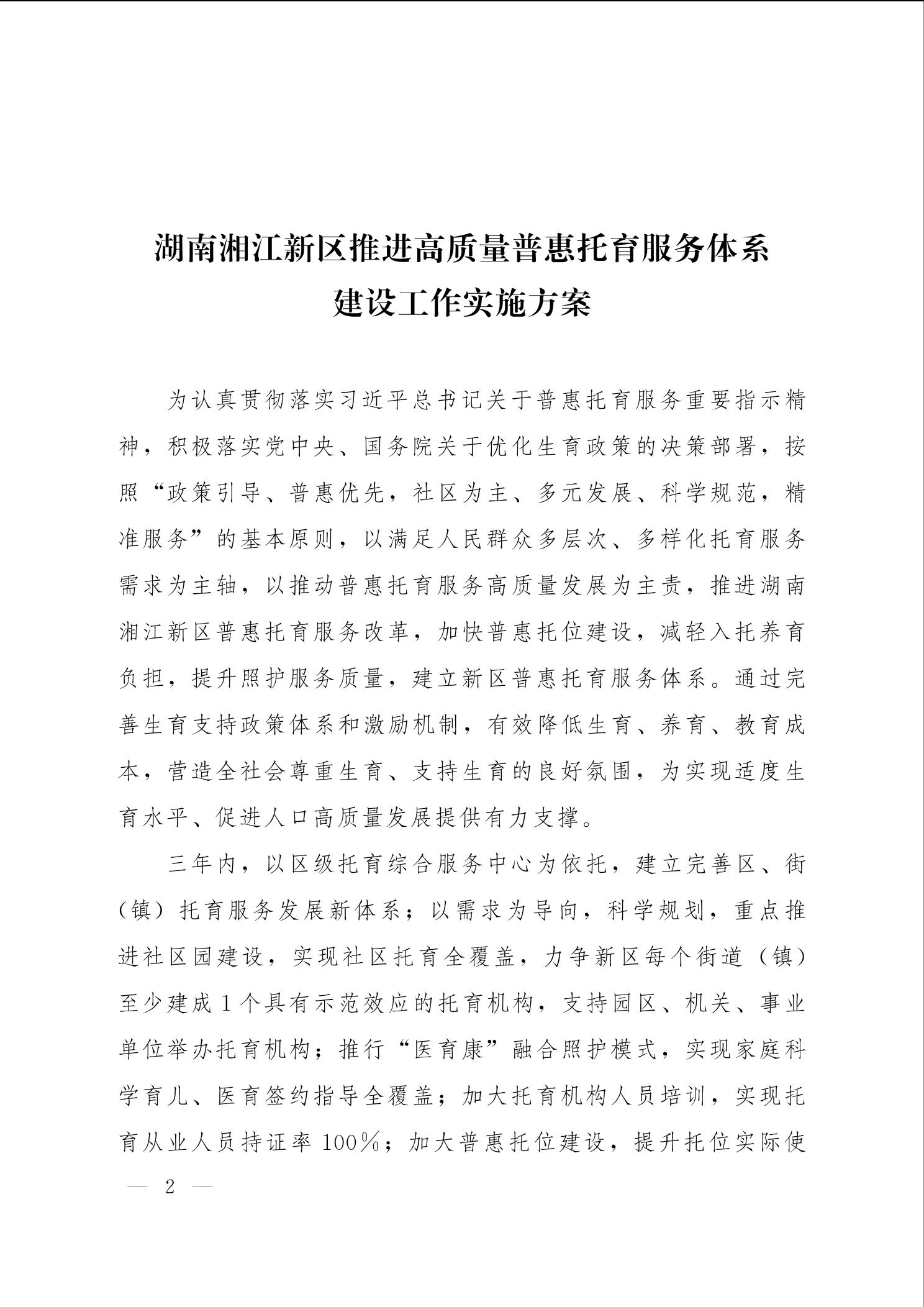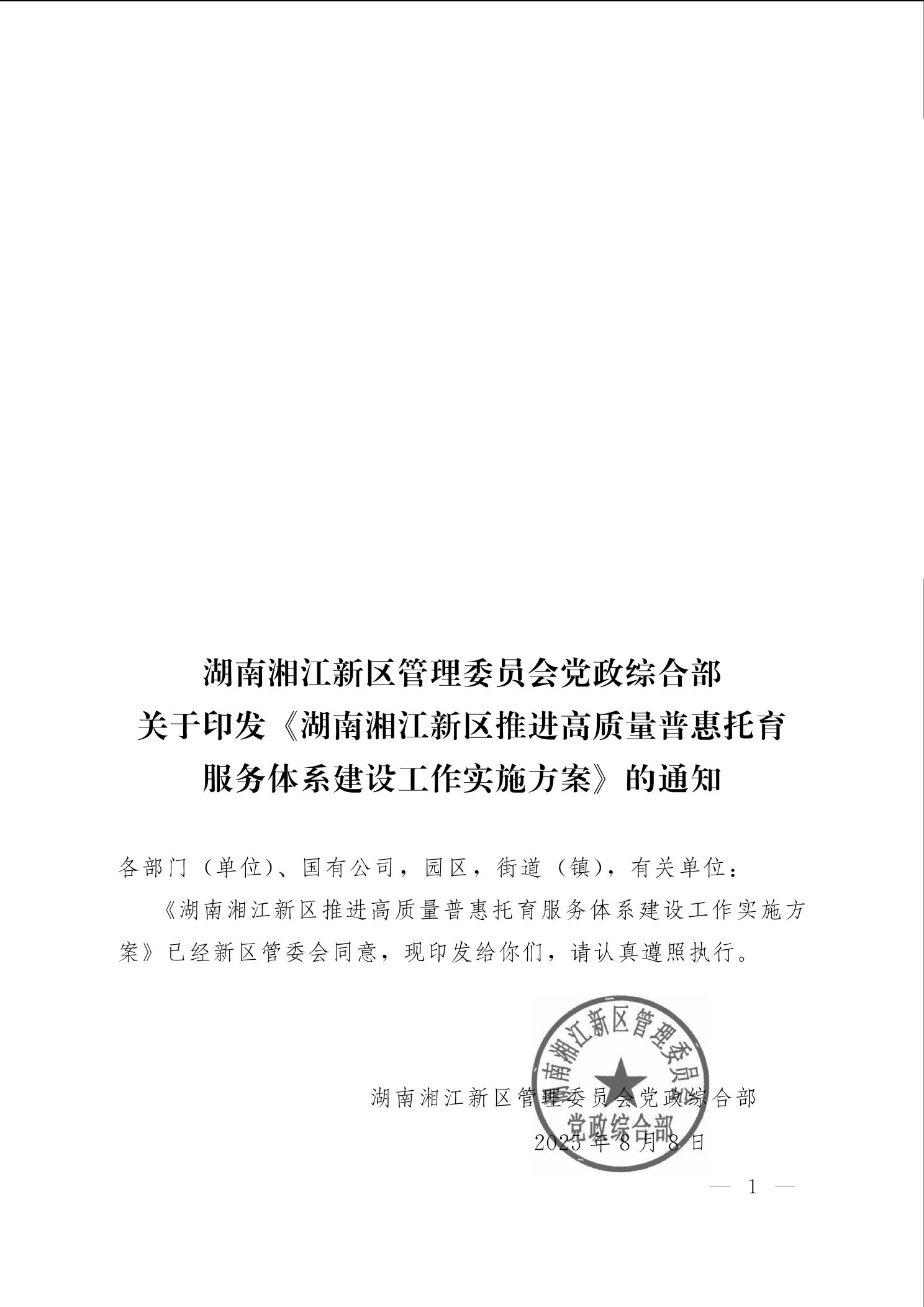 关于印发《湖南湘江新区推进高质量普惠托育服务体系建设工作实施方案》的通知