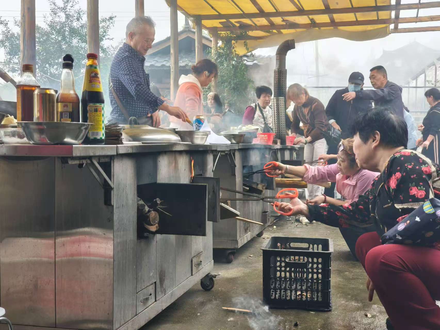活动以10人为一组开展,围绕“健康、家常、拿手”主题,用柴火灶烹制一桌家常菜。各组组员分工协作,洗切炒煮有条不紊,柴火噼啪声与饭菜香气交织,现场热闹非凡。比赛采用“盲选评分”机制,每组推选1名代表组成评委团,从菜品口味、健康搭配、摆盘造型等维度匿名打分,最终评选出1组一等奖、2组二等奖、3组三等奖,并为获奖团队颁发奖品。